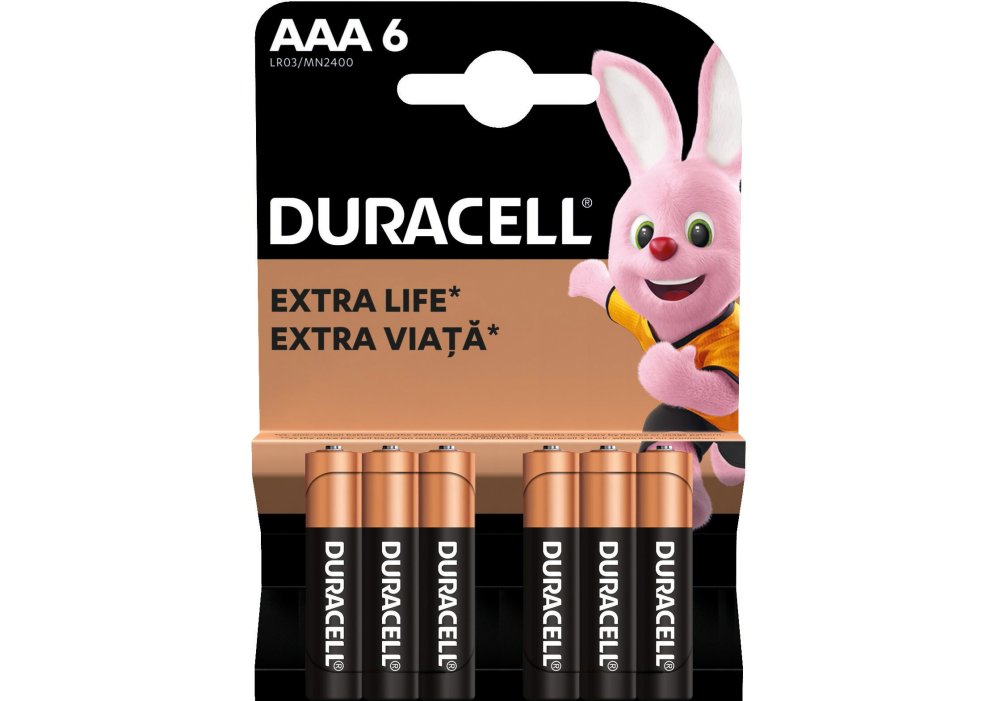 Duracell пропонує широкий асортимент батарейок, які можуть бути використані в електронних пристроях, що вимагають надійного забезпечення енергією. Батарейки Duracell AAА – це багатоцільові лужні батарейки, ідеальні для надійного живлення енергією пристроїв повсякденного використання, які потребують додаткової енергії. Лужні батарейки Duracell працюють набагато довше * (* порівняно з вугільно-цинковими батарейками в стандартному тесті IEC AAA 2015 року. Результати можуть відрізнятися залежно від пристрою або способу використання (www.iec.ch)) і доступні в розмірах AA, AAA, C, D і 9V. Технологія Duralock зберігає батарейки Duracell, які не використовувались, готовими до використання і зарядженими до 10 років при зберіганні в нормальних умовах. Ці батарейки дозволяють Вам вільно насолоджуватися використанням ваших приладів, даючи Вам продукт, на який ви можете покластися. Батарейки Duracell найкраще використовувати, коли ви шукаєте надійне джерело енергії тривалої дії для Ваших повсякденних пристроїв, таких як моторизовані іграшки, ліхтарики, портативні ігрові консолі, пульти дистанційного керування і т.д. У 1969 році продукти Duracell були частиною місії Apollo 11, що зробило їх першими батарейками на Місяці.