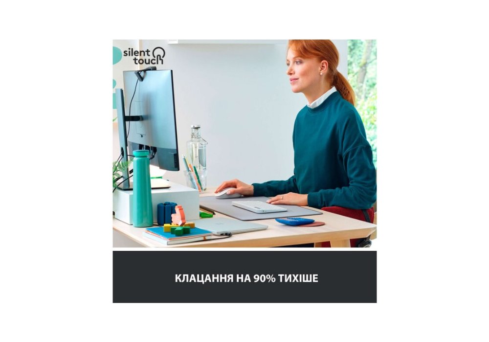 Ніяких дратівливих шумів. Завдяки технології Logitech SilentTouch миша працює практично безшумно, знижуючи гучність клацань до 90%, щоб ви могли повністю зосередитися на роботі та не відволікатися на сторонні звуки. Технологія Logitech Options+ дає можливість призначити бічним кнопкам ті функції, які зроблять вашу роботу легшою та ефективнішою. Режим енергозбереження забезпечує до 24 місяців роботи на одному джерелі живлення (батарейка типу АА).