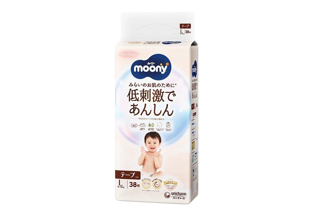 Moony Natural – м’які, ультратонкі та «дихаючі» одноразові підгузки з високоякісних матеріалів та високою поглинаючою здатністю. Вони клінічно протестовані та рекомендовані для використання у дитячій гігієні вже з перших днів життя. Підгузки мають округлу форму, їх еластичні липучки забезпечують додатковий комфорт для малюка. Форма внутрішньої поверхні стала більш анатомічною, завдяки цьому підгузок повністю повторює вигини тіла малюка.