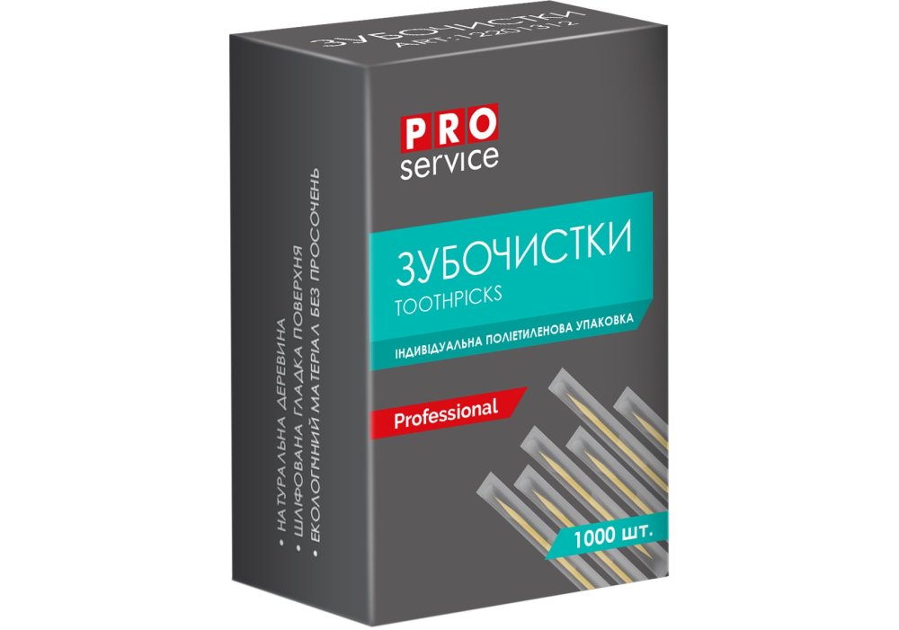 Сама упаковка перед непосредственным использованием легко снимается. Зубочистки ТМ PRO service в комплектации 1000 шт в индивидуальной упаковке. Длина каждой зубочистки составляет 6,5см.