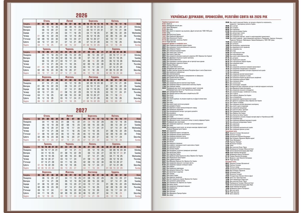 календарі на 2026-2027 роки