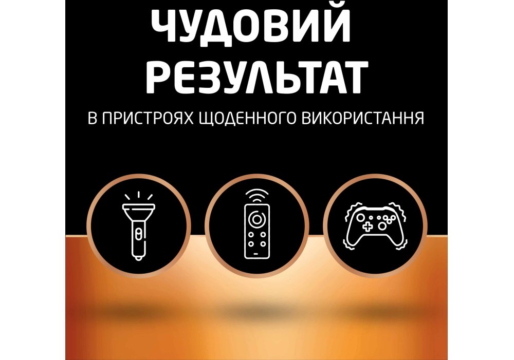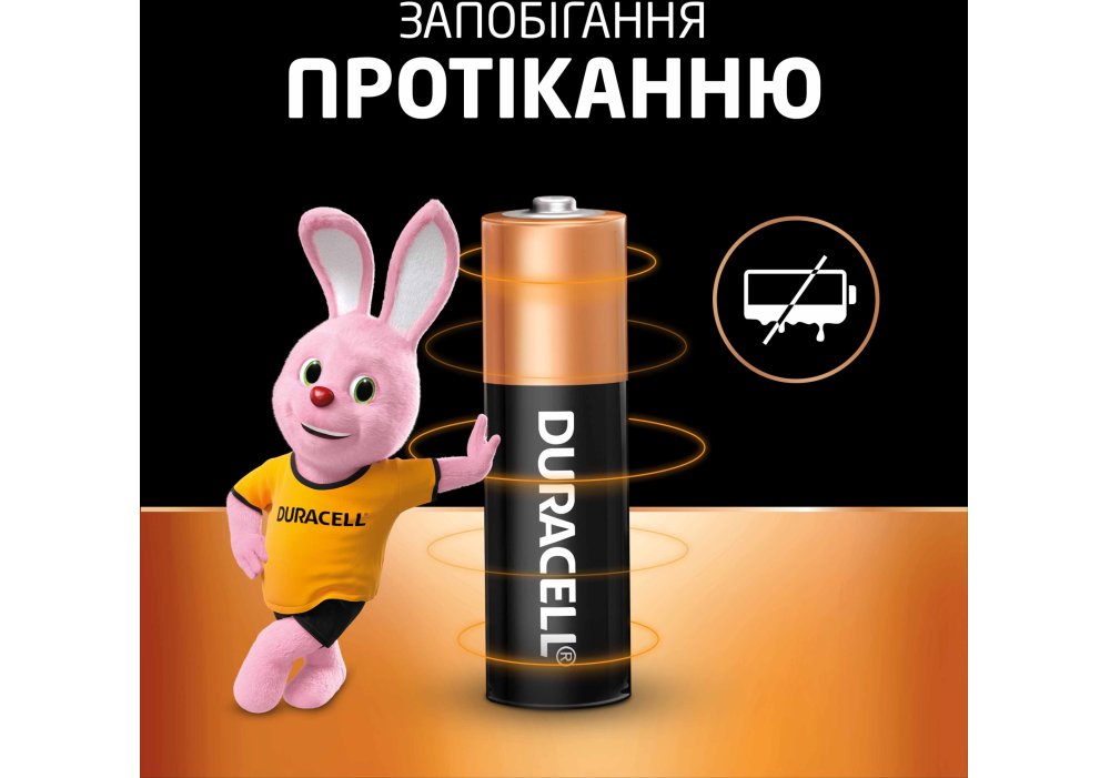 Duracell пропонує широкий асортимент батарейок, які можуть бути використані в електронних пристроях, що вимагають надійного забезпечення енергією. Батарейки Duracell AA – це багатоцільові лужні батарейки, ідеальні для надійного живлення енергією пристроїв повсякденного використання, які потребують додаткової енергії. Лужні батарейки Duracell працюють до 15 разів довше * (* Порівняно з провідними цинковими батарейками AA в тесті цифрових фотоапаратів із високим рівнем споживання енергії IEC AA 2021 (www.iec.ch). Результати можуть відрізнятися залежно від пристрою та способу використання) і доступні в розмірах AA, AAA, C, D і 9V. Технологія Duralock зберігає батарейки Duracell, які не використовувались, готовими до використання і зарядженими до 10 років при зберіганні в нормальних умовах. Ці батарейки дозволяють Вам вільно насолоджуватися використанням ваших приладів, даючи Вам продукт, на який ви можете покластися. Батарейки Duracell найкраще використовувати, коли ви шукаєте надійне джерело енергії тривалої дії для Ваших повсякденних пристроїв, таких як моторизовані іграшки, ліхтарики, портативні ігрові консолі, пульти дистанційного керування і т.д. У 1969 році продукти Duracell були частиною місії Apollo 11, що зробило їх першими батарейками на Місяці.