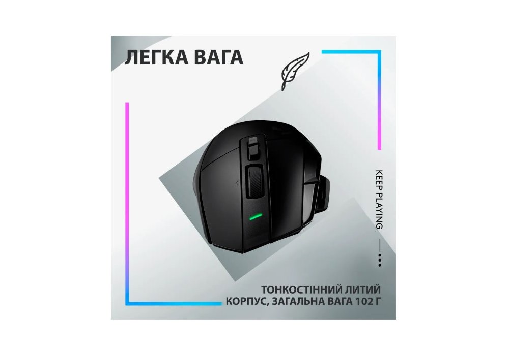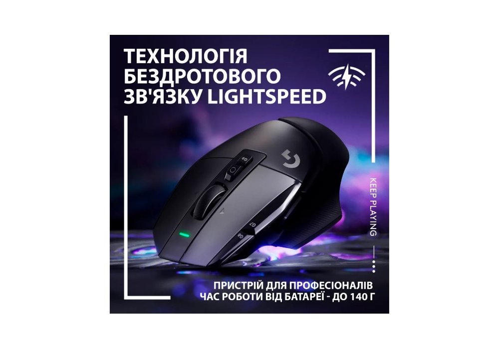 Професійна якість підключення тепер з оновленим протоколом, який забезпечує частоту оновлення на 68% швидше, ніж у попереднього покоління. За допомогою неймовірно ефективної технології LIGHTSPEED, G502 X LIGHTSPEED також досягає до 140 годин автономної роботи від одного заряду батареї.