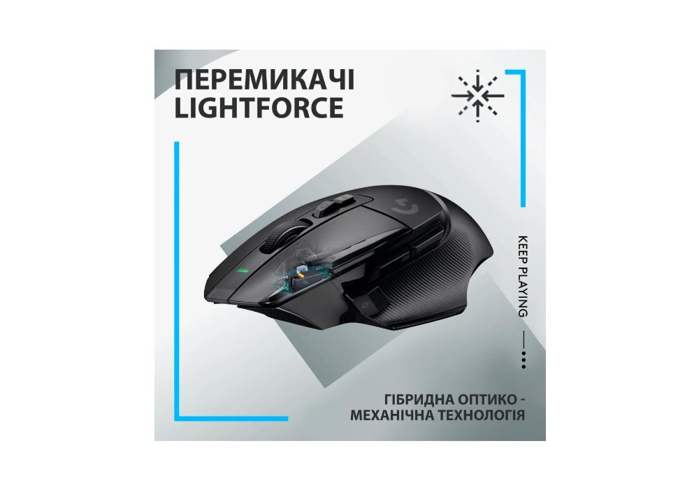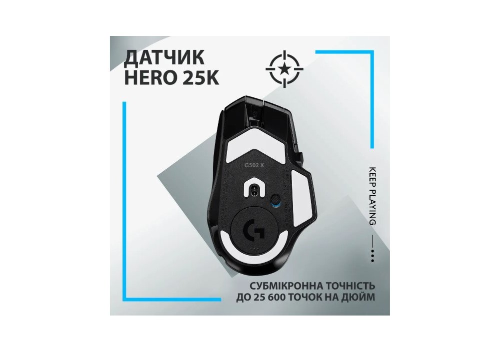 G502 X LIGHTSPEED - останній додаток до легендарної лінійки G502. Він був перероблений і перетворений за допомогою найінноваційніших технологій для геймінгу, включаючи наші перші гібридні перемикачі LIGHTFORCE, бездротову технологію LIGHTSPEED преміум-класу та сенсор HERO 25K. G502 X LIGHTSPEED також сумісний з POWERPLAY, тому він ніколи не розряджається.
