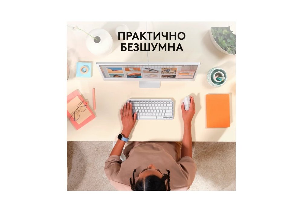 Під'єднуйтесь швидко за допомогою Bluetooth® Low Energy або використовуйте включений USB-приймач Logi Bolt - ідеально підходить для перенаселених середовищ, таких як офіс. Насолоджуйтеся до 2 років продуктивності з використанням однієї батареї типу AA, яка вже включена в комплект.
