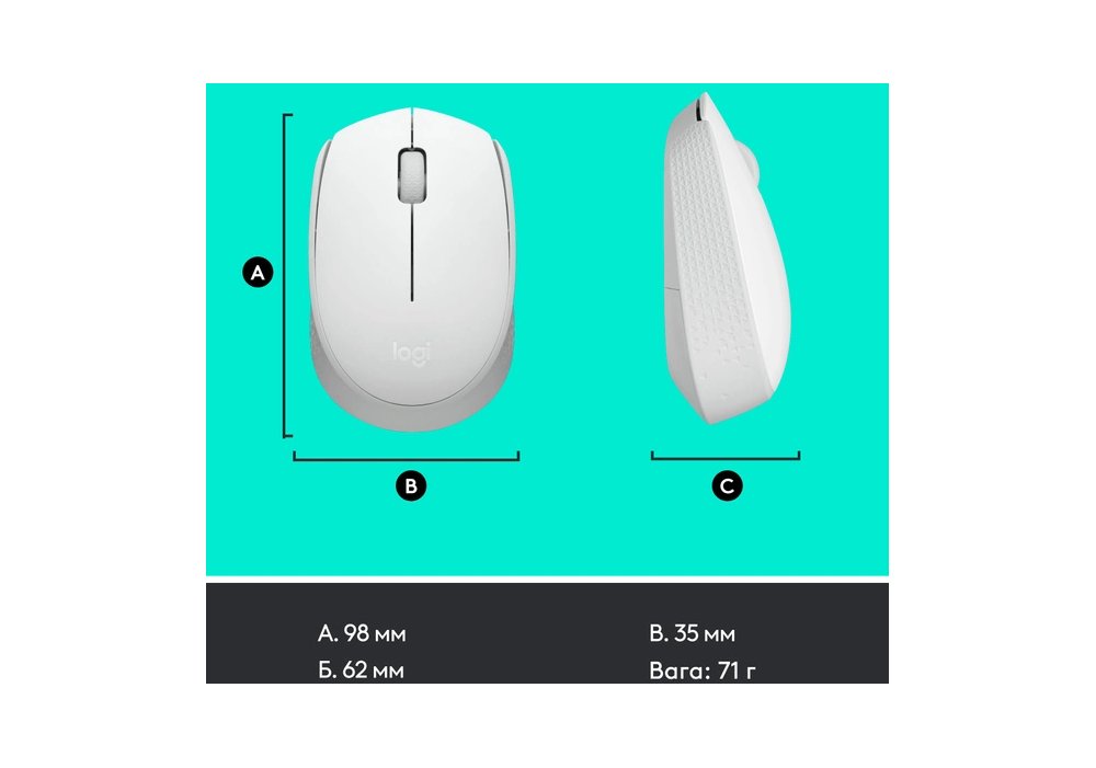 Компактний бездротовий M171 має повністю зручну для обох рук конструкцію, яка легко поміщається в сумку для вашого ноутбука, тож ви можете працювати будь-де — незалежно від того, лівша ви чи правша.