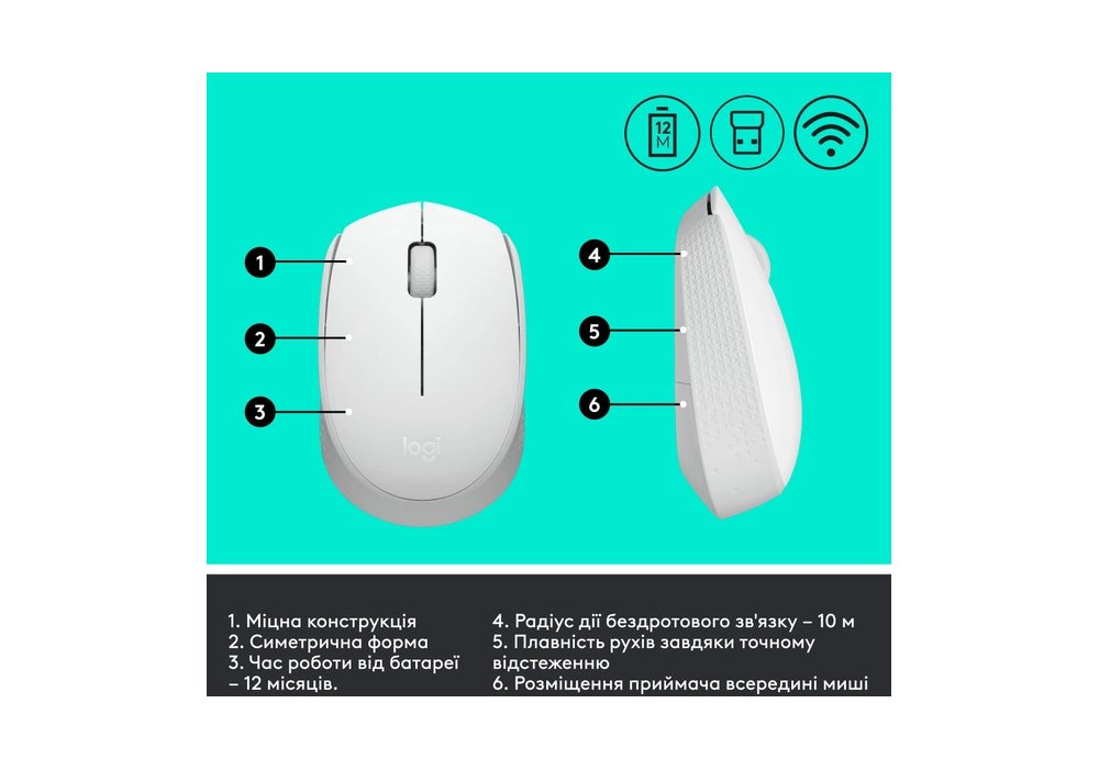 Миша розроблена з дотриманням тих самих високих стандартів якості, які зробили компанію Logitech світовим лідером у виробництві мишей і клавіатур. Довговічний і надійний M171 також працює до 12 місяців без заміни батарей завдяки кнопці ввімкнення/вимкнення та режиму автоматичного переходу в режим енергозбереження.